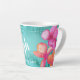 Personalised coffee mug with tropical teal background with bold pink and orange plumeria flowers overlaid. Easily customise name and message for your own personal touch. Perfect for a personalised Mother's Day coffee mug. Versatile for coastal themes, beach wedding gifts, and coral and turquoise colour themes. Easily add your name and monogram, or Quote / Saying for a personal touch.