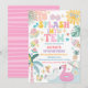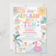 Make a splash with this vibrant tropical pool party birthday invitation, perfect for summer celebrations! Featuring colourful illustrations of palm trees, flamingos, popsicles, sunglasses, and beach balls, this cheerful design sets the tone for a fun-filled day. Ideal for kids birthdays, it combines playful tropical elements with a festive layout that guests will love. Customise with your party details to create a unique invitation thats both stylish and memorable.