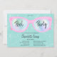 Modern pool party holographic glasses Sweet 16 with cute and chic trendy pink and holographic sunglasses on a light blue water background, the colour can be changed. A fun and cool summer party invitation