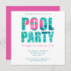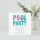 Throwing a tropical pool party and looking for an appropriate invitation? Look no further! This modern, cool and trendy design features text art with a greenish-blue swimming pool and hot pink float and modern typography is perfect for your pool party. Simply add your party details to the postcard and get ready to party!