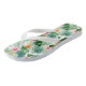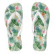 Adult flip flops perfect for all your summer fun, shown here in white with a tropical print.