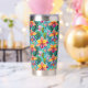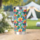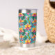 This thermal tumbler is shown with a lovely tropical flowers print.