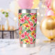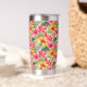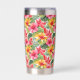 This thermal tumbler is shown with a lovely tropical flowers print.