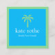 Simple, modern green silhouette of palm tree on colbalt blue background.