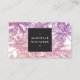 Glittery silhouettes of palm trees create a tropical backdrop on this modern and sophisticated designer business card template. Your name or business name is styled in a simple black box for a clean, minimal aesthetic that contrasts well with the glitter background. Designed by 1201AM © 1201AM CREATIVE