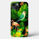 Cute Summer or Tropical rainforest phone case showing palm leaves, monstera leaves, flamingos and parrots,