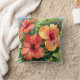 Tropical Red and Yellow Hibiscus Watercolor Floral Cushion