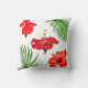 Tropical Red Hibiscus Flowers & Palm Leaves Cushion