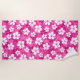 Tropical Red Violet White Hibiscus Flower Pattern Beach Towel