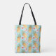 Tropical retro pineapple print on turquoise tote bag