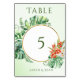 From our Tropical Ring Wedding Suite, here are 3.5" x 5" wedding table cards to help your guests find their seats. You can easily change the table card number with the template and add your names prior to placing into your shopping cart, or if you prefer, just remove the number and you can simply order more cards and write your numbers in yourself. Your choice! Be sure to pair these up with our acrylic-based wedding table place card holders for a complete look! This particular version is designed on ultra-thick paper. You can choose basic paper and cut costs for budget purposes.