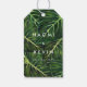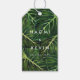 A bold and fresh design with painted palm leaves and faux gold border for a summer and tropical wedding theme.