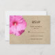 A bright pink hibiscus flower accents this response card on a beach sand background, making it perfect for the beach, tropical, destination, Hawaiian or summertime wedding. This coordinates perfectly with the Tropical Wedding Invitation on beach sand.