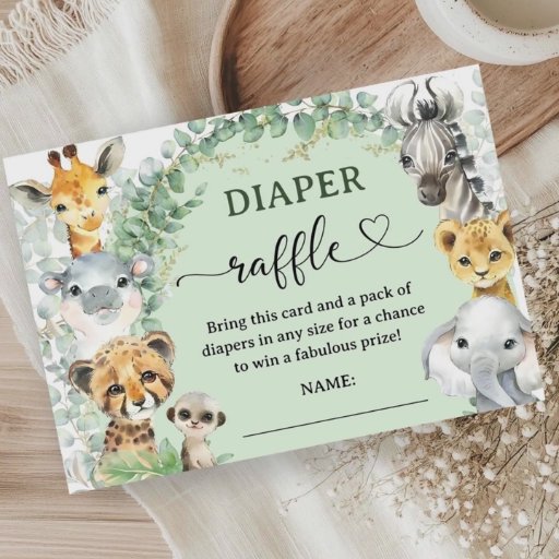 Elevate your Baby Shower with our "Safari Baby Shower" Diaper Raffle Cards, and give your guests the possibility to participate in the Diaper Raffle! Give them the chance to win amazing prizes while helping the parents-to-be prepare for their bundle of joy. Don't miss out – grab your Diaper Raffle Cards now and make your baby shower even more special!