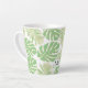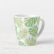 Modern sage green monstera and palm leaves tropical latte mug. The elements of this gorgeous design are a pattern made of sage green monstera and palm leaves with gold outline and your monogram in a frame.