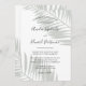 Tropical sage green palm leaves wedding invitation features beautiful green palms and a clean white background.