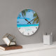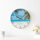 Tropical Sandy Beach Turquoise Monogram Palm Tree Large Clock