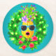 Tropical Sassy Singing Lady Pineapple Round Paper Coaster