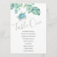 Designed to coordinate with Do Tell A Belle's tropical wedding stationery suite, this seating chart features my original hand painted sea turtle and monstera palm leaves in shades of turquoise, blue and green. The table number is set in a modern hand lettered calligraphy script typography with your list of guest names. The back side features a complimentary sage green colour. Perfect for beach wedding receptions, coastal rehearsal dinners and bridal showers. To see more of visit www.zazzle.com/dotellabelle