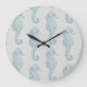 Tropical Seahorses, Seahorse Pattern - Blue Grey Large Clock