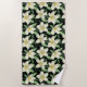 Tropical seamless pattern white flowers green leaf beach towel