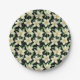 Tropical seamless pattern white flowers green leaf paper plate