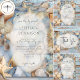 Embark on a journey of elegance and tranquillity with our exquisite wedding invitations adorned with soft watercolor clusters of seashells in a mesmerising palette of ocean blue, cream, terracotta rust, beige, tan, and blush pink. The gentle hues dance gracefully against a soft white oval blur, providing the perfect backdrop for modern-style text that effortlessly captures the essence of your love story. With the delicate balance of captivating design and readability, these invitations set the tone for a celebration as unique as your bond. Turn over to reveal the enchanting seashell backdrop once more, completing the harmony of design. Invite your loved ones to join you in celebrating your special day with invitations that evoke the serenity and beauty of the seaside. Created by Simply Farmhouse Press.
