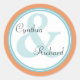 Citrus orange tropical spa bride and groom monogrammed wedding envelope seal stickers. Fresh orange and aqua blue teal design. © 2010 Wedding Bells All Rights Reserved