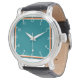 This watch with an aqua and orange-coloured face is quite fashionable.