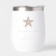 These beachy chic wine tumblers make great bridal party gifts or destination wedding favours for your summer or tropical wedding. Clean minimal design features your n names, wedding date, and location in classic black serif lettering. A beachy starfish illustration in neutral sandy tan beige completes the design.