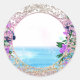 Tropical Sticker with sparkling lights in the water and a glittering wreath with lavender flowers