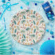 Bright tropical pattern paper plate featuring palm trees, surfboards, citrus slices, flip flops, and fruity drinks in a fun summer-inspired style. Ideal for beach lovers, surfers, vacation fans, and anyone who loves colorful tropical aesthetics.