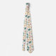 Bright tropical pattern necktie featuring palm trees, surfboards, citrus slices, flip flops, and fruity drinks in a fun summer-inspired style. Ideal for beach lovers, surfers, vacation fans, and anyone who loves colorful tropical aesthetics.