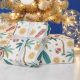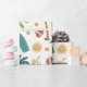 Bright tropical pattern wrapping paper featuring palm trees, surfboards, citrus slices, flip flops, and fruity drinks in a fun summer-inspired style. Ideal for beach lovers, surfers, vacation fans, and anyone who loves colorful tropical aesthetics.