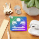 Tropical palm trees, surfboard, beach hut, and flying seagulls under a bright summer sun - all against a vivid gradient background of green, blue, and purple. Customise this design to make it truly your own.