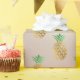 Tropical summer pineapple gold mint fruits pink wrapping paper
