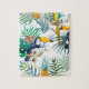 Tropical summer Pineapple Parrot Bird watercolor Jigsaw Puzzle