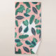 Tropical Summer Pink Green Leaves Sunset Pattern Bath Towel Set
