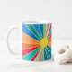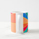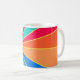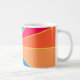 This mug has a design of a tropical sunrise in reds, oranges, blues, and greens.