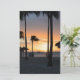 Pretty tropical sunset with the sun setting on the horizon and silhouetted palm trees.