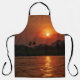This apron features a vivid tropical sunset scene with glowing orange and red hues across the sky. Silhouetted palm trees and distant mountains frame the horizon, while the sun casts a shimmering reflection on the water below. The design blends practicality with artistry, bringing warmth and serenity to your kitchen. Perfect for cooking, baking, or crafting, it adds a touch of paradise to everyday tasks. A thoughtful gift for nature lovers, travelers, or anyone who enjoys vibrant landscapes and stylish kitchenwear.