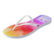 Hit the beach, (or at least dream about it!), with these colourful and personalised beach print flip-flops. Just update to your first and last name initials to make them your own. Great for vacations, as a gift for friends with summer birthdays, or for newlyweds headed for a tropical honeymoon. Available in a blue and green version as well. Photo can be updated with the "Customise it" feature if you'd like to use your own image.