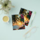 Step into paradise with this mesmerising tropical sunset beach scene, where the ocean meets the golden horizon in a breathtaking display of colour. As the sun slowly dips into the sea, the sky ignites in shades of fiery orange, soft pinks, and deep purples, creating a dreamlike atmosphere of peace and tranquillity. Palm trees gently sway in the evening breeze, their silhouettes standing tall against the vibrant sky, while lush hibiscus blossoms lend a splash of tropical brilliance to the foreground.