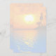 Wedding program fan paper with tropical sunset background image. Picture is on both sides of quality paper with a choice of upgrades and edge appearance.