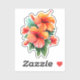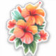 This sticker captures the essence of a tropical paradise with its vibrant array of hibiscus flowers in full bloom. The rich oranges and fiery reds of the petals are set against lush green leaves, creating a stunning visual that's both lively and inviting. It's an ideal way to infuse any item with the spirit of summer and the warmth of exotic locales.