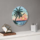 This artistic wall clock features a beautiful illustration of a palm tree silhouetted against a vibrant tropical sunset. The design captures a serene ocean with gentle waves under a colourful sky, evoking a relaxing summer beach landscape. This stylish and artistic timepiece is perfect for interior decor, bringing a calm and vibrant tropical theme to any room.