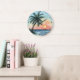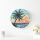 Tropical Sunset Palm Ocean Waves Large Clock