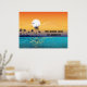 Tropical sunset, palm trees, ocean poster print
