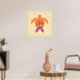 Vector illustration of a sea turtle with a tropical sunset design with palm trees. Tags: palm, tree, sun, sunset, turtle, sea, tropical, reptile, sunrise, vacation, isle, island, paradise, utopia, bliss, caribbean, florida, hawaii
