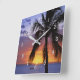 Tropical Sunset with Palm Tree Square Wall Clock
